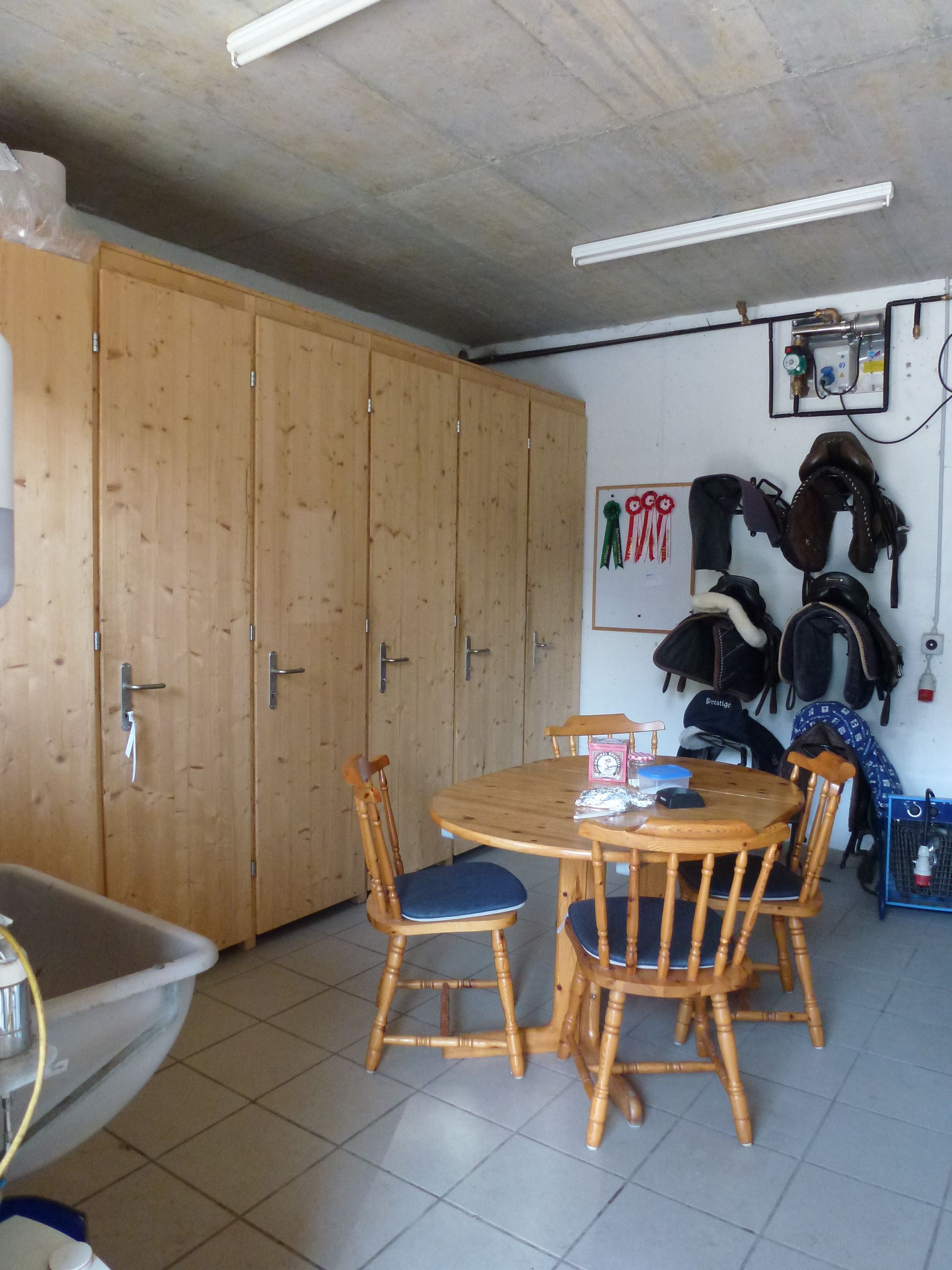 Jedem Penionär steht ein geräumiger und abschliessbarer Schrank zur Verfügung, sowie ein Platz für Sattel- und Zaumzeug.